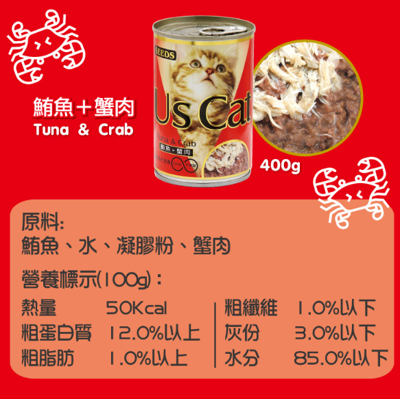 大份量的鮪魚貓餐罐,新鮮的鮪魚和新鮮的蟹肉完美組合。